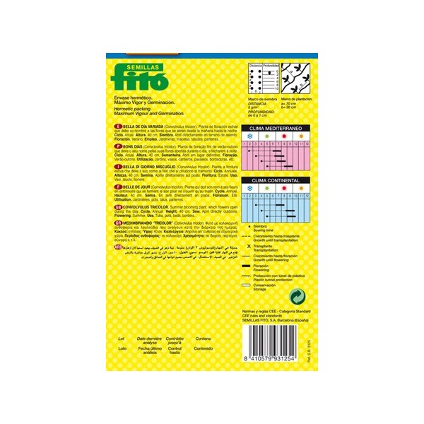Llavors de gran qualitat en envàs hermètic. Màxim vigor i germinació.