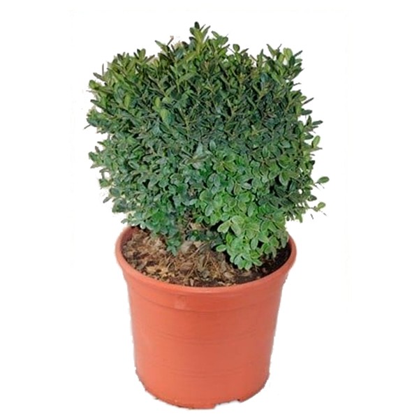 Arbust ornamental molt resistent a les gelades, al ple sol i a les inclemències del temps en general. De fulles petites d'un verd intens molt característic, forma mates espesses. Tiges llenyoses i resistents. De creixement molt lent.