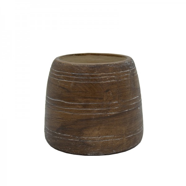 Test de ceràmica mat, de color marró, gravada, en forma cònica, de gran gruix i qualitat. Test d'alta gamma, ideal per a decoració en interior, sense forat interior.