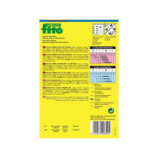 Llavors de gran qualitat en envàs hermètic. Màxim vigor i germinació. Veure característiques al dors del sobre