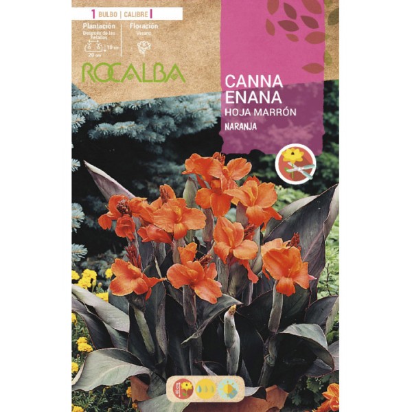 Bulb de canna nana, de plantació a l'hivern - primavera. De fulles marrons.