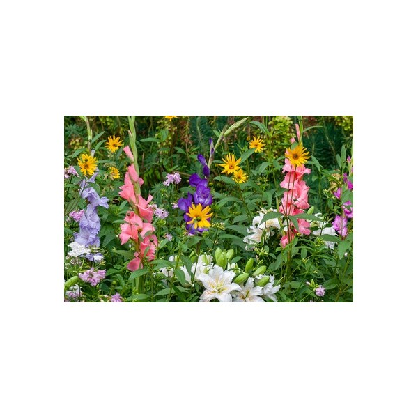 La combinació d'aquestes varietats de bulbs de primavera-estiu, us permetrà una florida acolorida i esglaonada des de mitjans de primavera fins entrat l'estiu. Tots els bulbs són de colors variats.