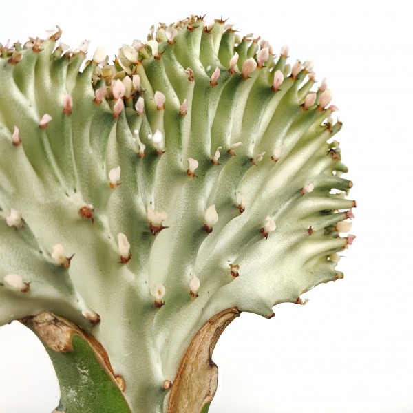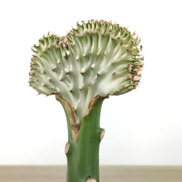 Cactus empeltat compost per 2 cactus, empeltats entre ells, en què el peu és de color verd, i l'empelt Euphorbia lactea cristata.