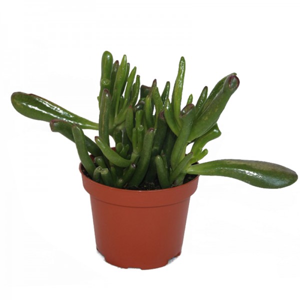 Planta crasa anomenada popularment 'Hobbit'. fulles redondeadas i molt jugoses, acabades en lòbuls morats. Planta ideal d'interior ja que s'ha de protegir del fred.