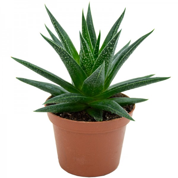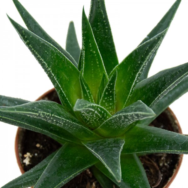 L'haworthia herbàcia és una haworthia de fulles de verd clar, puntejades en blanc i de pell brillant. Resistent com totes les haworthies