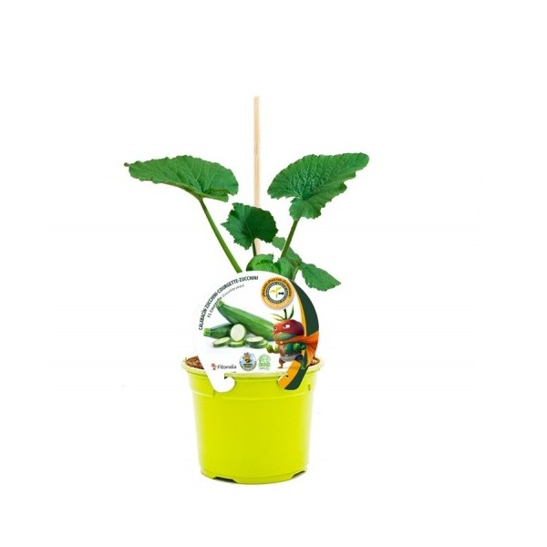 Plantes de carbasso empeltat híbrid Courgette F1 natural, presentat en test de 12 cm de diàmetre. Planta híbrida i empeltada
