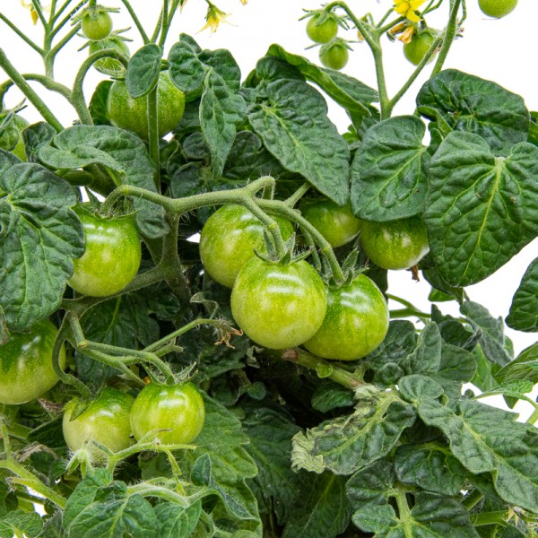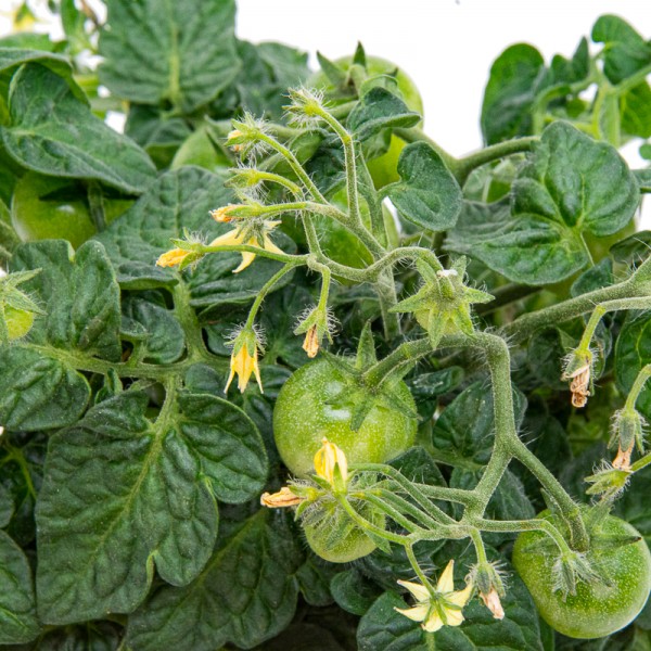 Test de tomàquet cherry vermell. Planta de tomàquet ja crescuda.