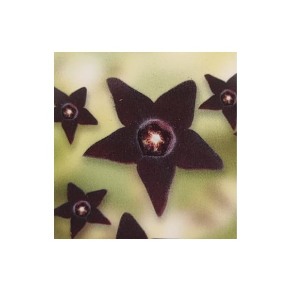 Es diu estrella negra perquè destaca per les seves fantàstiques flors de color negre que es formen en èpoques caloroses.
