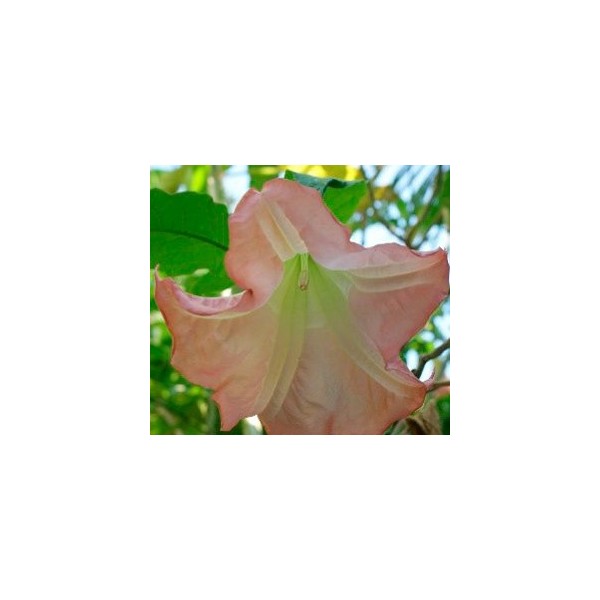 La datura o trompetero es un arbusto que llega a los 2 metros de altura, muy apreciado por la espectacular floración. Flores en forma de campana de 30 cm de tonos blanco, aunque en ocasiones también los hay en colores salmón. Planta tóxica si se consume. No le gustan las heladas ni los fríos continuados, ideal para jardines de climas templados. Tampoco se recomienda su plantado en maceta ya que necesita espacio para crecer.