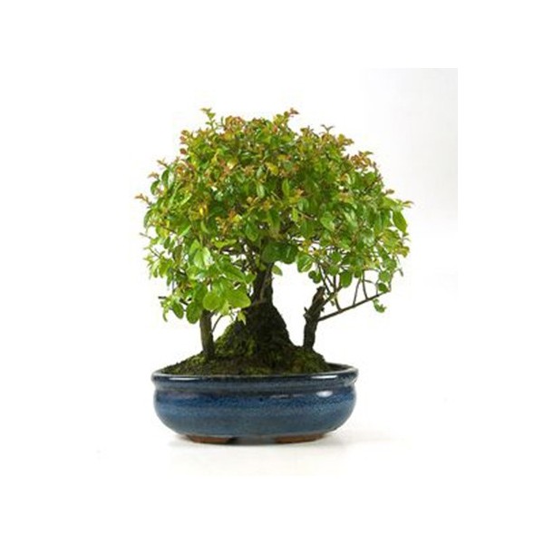 El bonsai sageretia o también llamado bonsai cireulo dulce chino es un arbol de interior en nuestros climas, que requiere un espacio bien iluminado de casa. Es de hoja perenne, pequeñita y tupida. Apreciado por el color rojo-cobrizo de su brotación, su corteza que se descama, sus pequeñas flores blanca y además fructifica facilmente, una característica poco habitual entre los bonsai de interior.