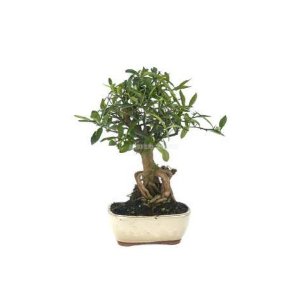 El bonsai naranjo enano es un arbol de hoja perenne, con floración muy perfumada en primavera y buen productos de pequeñas naranjas. De agosto a febrero destaca por el color vistoso de sus frutos, mientras que en primavera destaca por sus perfumadas flores. Situar en exterior, con sol directo y riego abundante en época de calor.