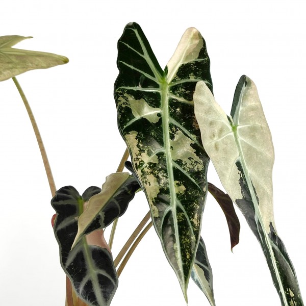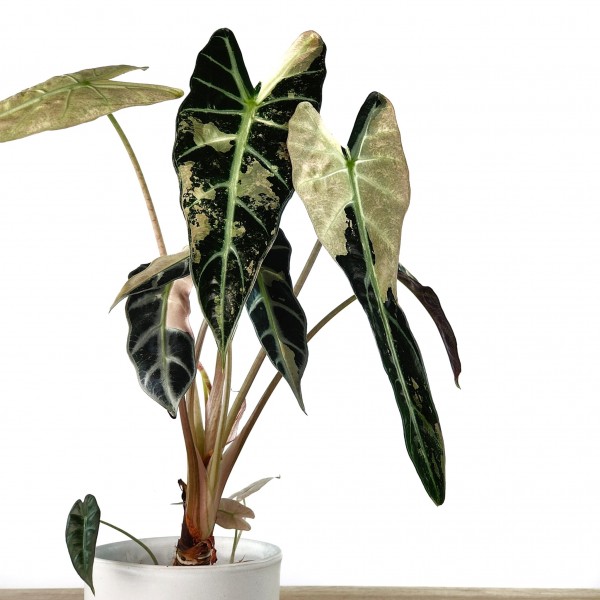 Alocasia muy resistente y de muy fácil cultivo, que requiere un espacio interior del hogar con mucha luminosidad y un riego moderado, sobretodo en invierno. Las hojas nuevas crecen ya matizadas, con un gran porcentaje de blanco en sus hojas