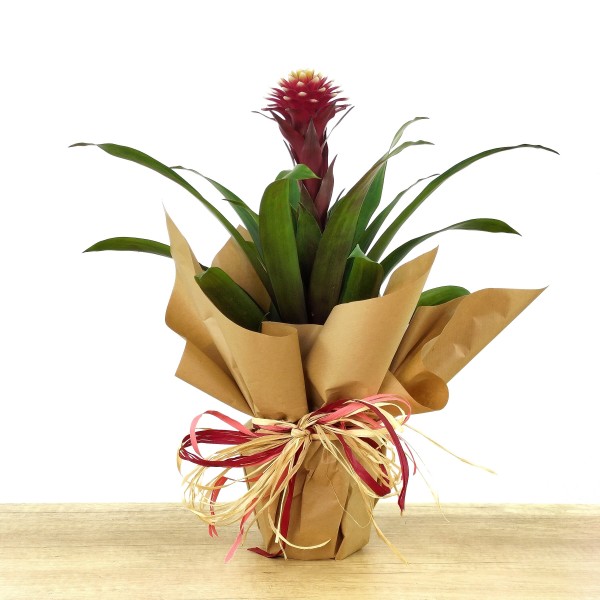 ¿Quieres recibir tu Guzmania Francesca envuelta para regalo o enviarlo a quien quieres felicitar? La envolvemos en papel kraft, atado con rafia natural y cinta de color, un embalado siempre perfecto.