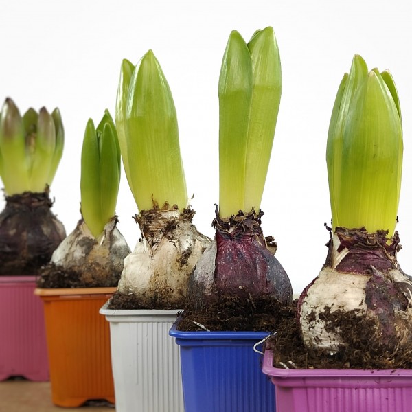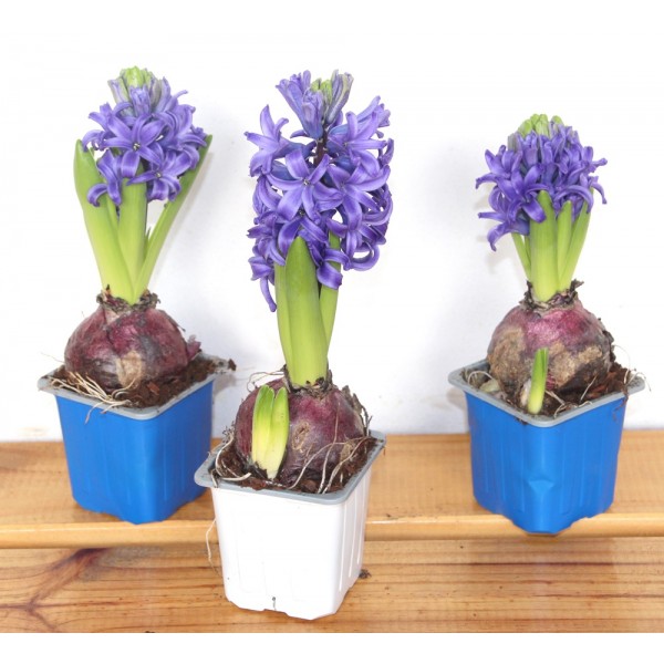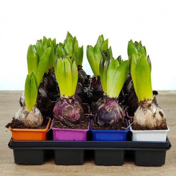 Planta bulbosa de floración invernal, de colores variados. Crea un ramillete de flores muy olorosas. Maceta con un bulbo de jacinto.