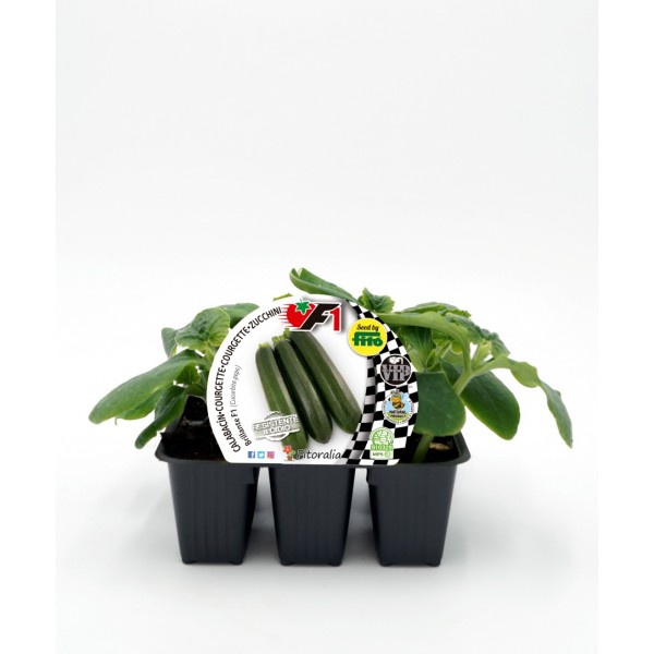 Plantones de calabacín h'ibrido F1 natural, presentado en albeolero. Planta híbrida (nunca trangénica) para una mejor y más uniforme fructificación
