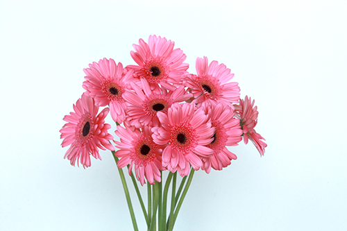 Bouquet de Gerberas roses composé de 10 bâtonnets. Fleur ornementale populaire de la famille des marguerites, mais avec des pétales plus grandes et plus frappantes. On peut les trouver de différentes couleurs et aussi multicolores. Il a une longue durée de vie à l’intérieur du vase.