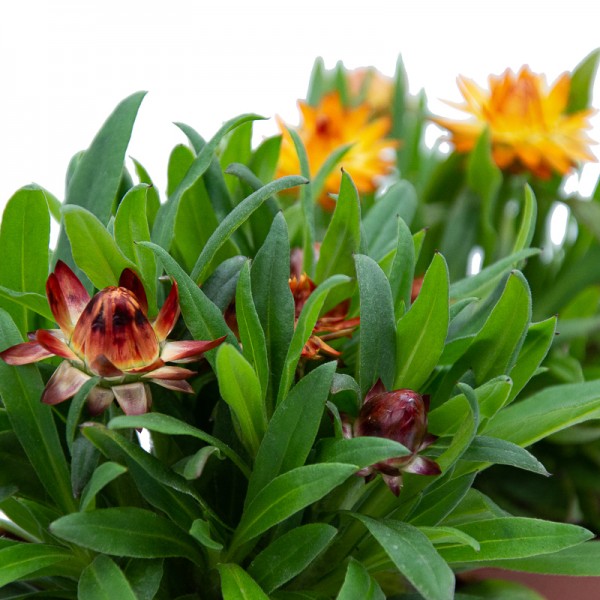 Aussi appelée fleur de paille, la fleur en papier est une plante annuelle australienne qui se caractérise par ses fleurs durables et son aspect papier. Largement utilisée pour les fleurs séchées, c'est une plante résistante à la chaleur, nécessitant la lumière directe du soleil et des arrosages fréquents. Comme pour toutes les plantes, il est important de retirer les fleurs séchées pour favoriser une nouvelle floraison. Elle supporte mal les gelées, sauf si celles-ci sont de très courte durée.