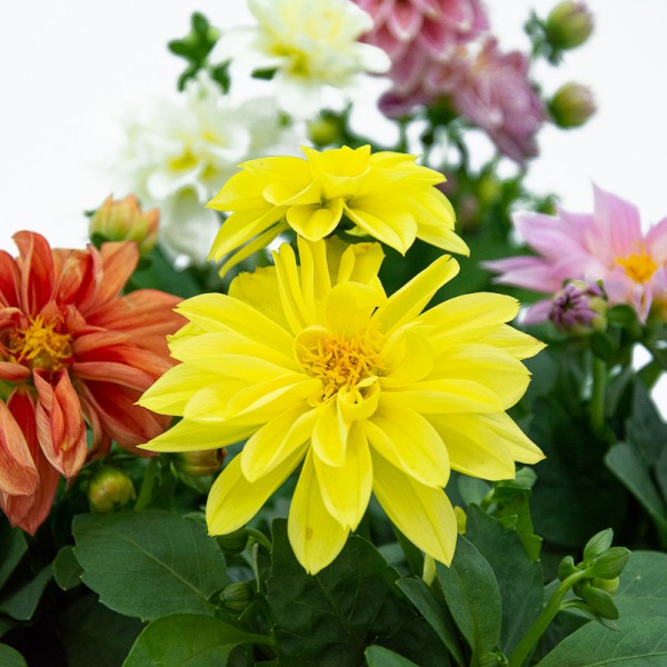 Le Dahlia décoratif ou Fleur de Dahlia, est une plante bulbeuse annuelle qui possède l'une des plus belles fleurs que l'on puisse planter dans le jardin. Feuillue et délicate, elle fleurit durant tout le printemps et l´été. Fleurs de plusieurs couleurs. Idéal pour les pots ou les massifs de fleurs.