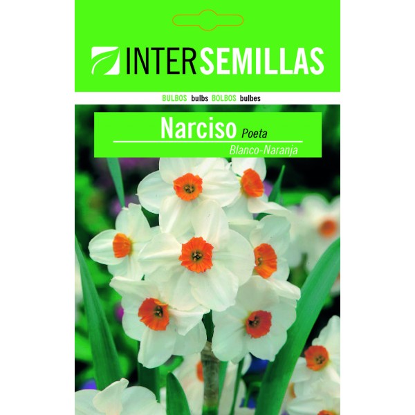 Bulbe de jonquille poète, blanc avec un centre orange. Pour plantation d'automne.