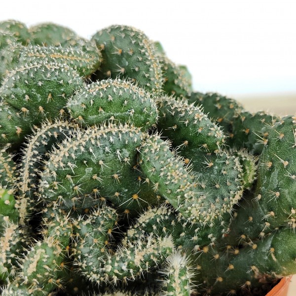 Cactus Mammillaria Elongata Cristata, originaire du Mexique, qui atteint quelques centimètres de hauteur et grandit lentement. Ses tiges ont une forme très semblable à celle d'un cerveau.