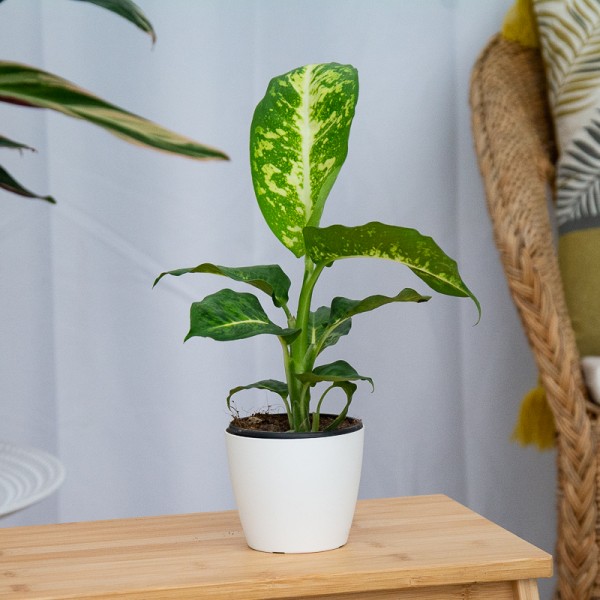 La Diphenbachia Sublime est une plante d'intérieur très semblable au diphenbachia tropique, mais avec des feuilles un peu plus lancéolées et plus petites, mais plus touffues. De plus, ses feuilles sont d'un vert plus clair et les couleurs blanches prédominent davantage.