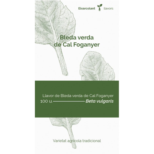 La blette verte de Cal Fogonyer est une variété de blettes très savoureuse et productive, caractérisée par ses feuilles vertes aux tiges larges et blanches, qui peuvent atteindre 60 cm, restant toujours tendres. Les exigences de culture sont minimes, car il s'agit d'une culture très facile qui n'a pratiquement besoin que d'être arrosée. Il se ressème même facilement et peut devenir subspontané.