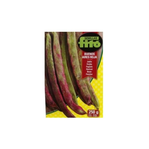 Variété grimpante, le haricot rouge de Buenos Aires. Il produit des gousses tachetées de rouge sur fond vert, plates, droites et légèrement courbées, de 15 à 18 cm de long. Idéal pour la consommation fraîche. Gros haricots bruns marbrés.