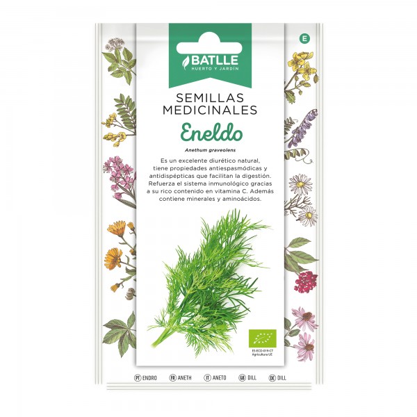 Graines d'Anethum graveolens issues de l'agriculture biologique. Plante herbacée annuelle. Hauteur : 25 à 50 cm. Tige fine et feuilles filiformes.
