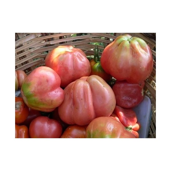 Variété de graines de tomate rose de Girona, très productive. Fruit en forme de poire, avec un col étroit et un fond large et côtelé. Il est de couleur rose pâle et possède une peau très fine, à moitié creuse. Saveur très aromatique, très douce et intense.
