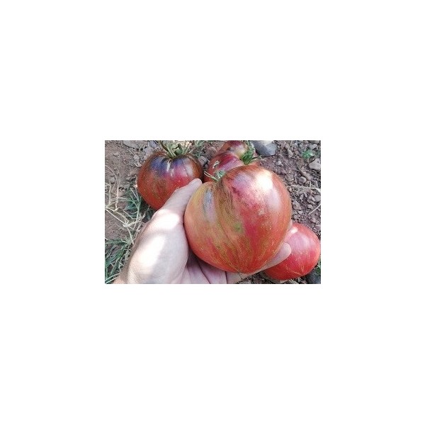 Tomate « Cœur de Bœuf » noire, fruit à salade, en forme de cœur, charnu et plein, contenant très peu de graines, très sucré avec une pointe d'acidité et d'une belle couleur rouge foncé. Bonne conservation grâce à sa texture plus ferme que celle des autres variétés de type « Cor de Bou ». Résistante aux premières gelées, elle continue de produire abondamment jusqu'en automne.