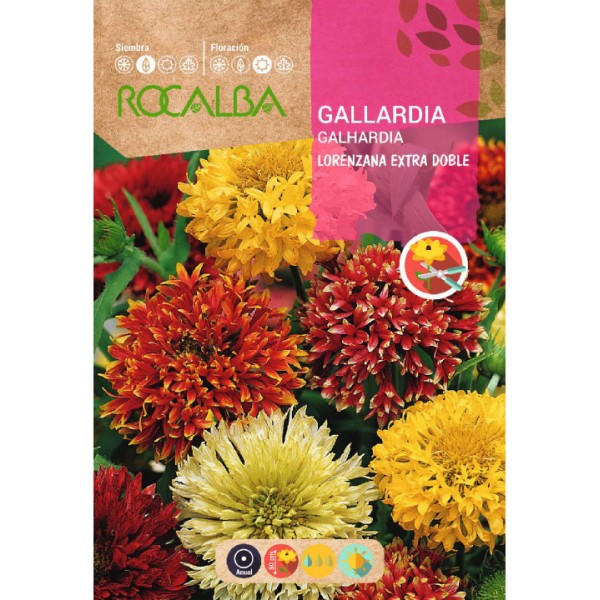 Graines de gallardia lorenzana graine double (Gaillardia pulchella). Plante herbacée annuelle à feuilles lancéolées et à fleurs en capitule arrondi muni de longues tiges.