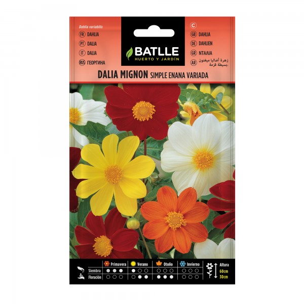 Graines de dahlia mignon, plante annuelle de 35 cm. Utilisations : en groupes dans des jardinières et pour la confection de bouquets.