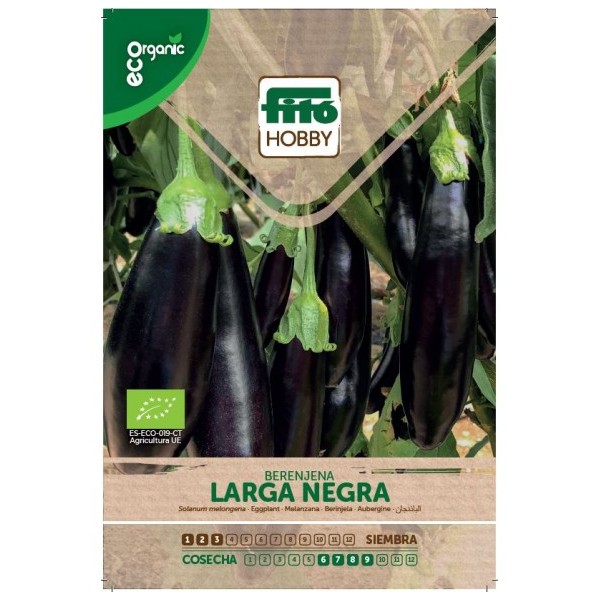 Graine d'aubergine noire longue biologique. Aubergine aux fruits allongés et fins de couleur pourpre intense. Il peut atteindre 1 mètre.