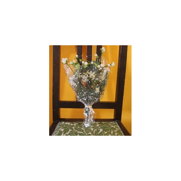 Bouquet de Gui chanceux, fabriqué avec du papier de cellophane, branches de sapin et de gui.