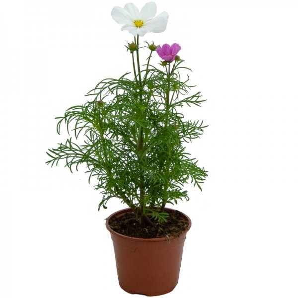 Le Cosmos est une plante annuelle, très adaptée au milieu de l'été dans les climats chauds, car elle résiste et fleurit même dans des conditions de température et d'humidité élevées. Fleurs ressemblant à des marguerites aux couleurs vives et aux tiges très ramifiées, c'est une plante à croissance rapide et à floraison abondante.