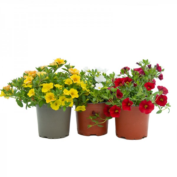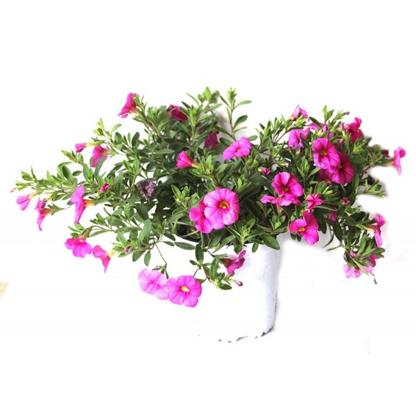 Populairement connu sous le nom de Pétunia Calibrachoa, c'est le mini pétunia, mais à suspendre. Très utilisé comme plante suspendue ou couvre-sol. Avec une florissant en permanence en forme de trompette pendant les mois chauds, elles créent de petites tapisseries de fleurs denses. Les petites fleurs sont de couleurs différentes et les petites feuilles sont vertes et arrondies.