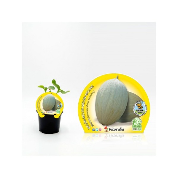 Plant de melon blanc, présenté en pot de 10,5 cm de diamètre.