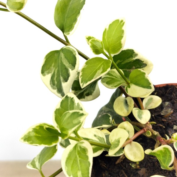 Vinca minor nunacé est une plante couvre-sol aux feuilles rondes nuancé vert blanc à la floraison estivale spectaculaire. Très vif, il colonise facilement les massifs et les espaces ensoleillés ou même à l'ombre ensoleillée, recouvrant parfaitement le sol d'un buisson d'environ 10 cm de haut.
