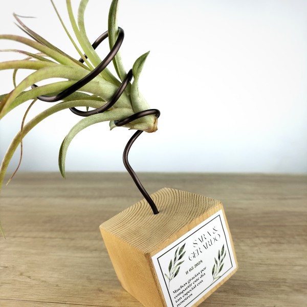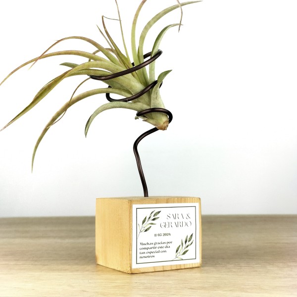 Les Tillandsias ou plantes aériennes sont l'un des cadeaux les plus insolites. Ce sont des plantes qui vivent de l’air, leur entretien est donc faible. Ce qui en fait des cadeaux parfaits. En plus de leur aspect surprenant, les tillandsias fleurissent très joliment. Ses fleurs ont des tons rougeâtres ou bleutés. C'est une plante qui, avec son support en bois et nos propositions, fonctionne parfaitement comme pièce maîtresse ou comme cadeau individuel pour les mariages.