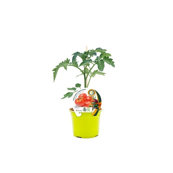 Plants de tomates Beef greffées hybrides naturels F1, présentés dans un pot de 12 cm de diamètre. Plante hybride et greffée