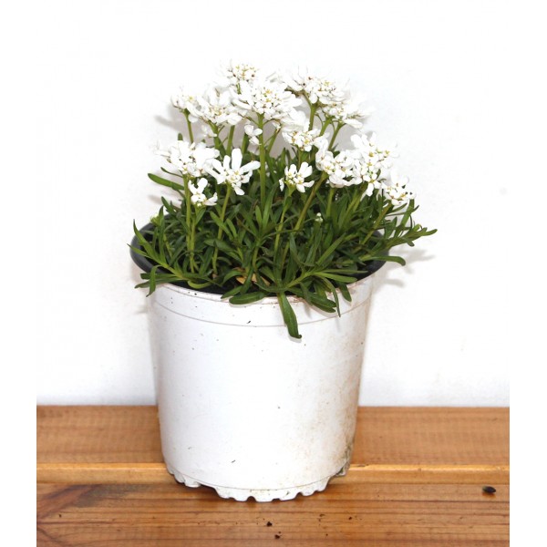 L'Iberis Sempervirens ou aussi appelé Carraspique est une plante vivace, utilisée comme plante ornementale, qui présente des feuilles étroites vertes foncés et des capitules denses et arrondis de fleurs blanches, sans arôme, au printemps et au début de l'été. L'Ibéris se développe dans les saisons tempérées, mais résiste au gel et à la chaleur estivale intense et atteint 15 à 30 cm de haut.