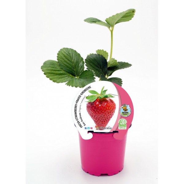 Plant de fraisier San Andreas, présenté dans un pot de 10,5 cm de diamètre.