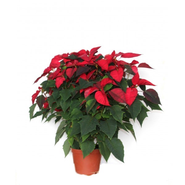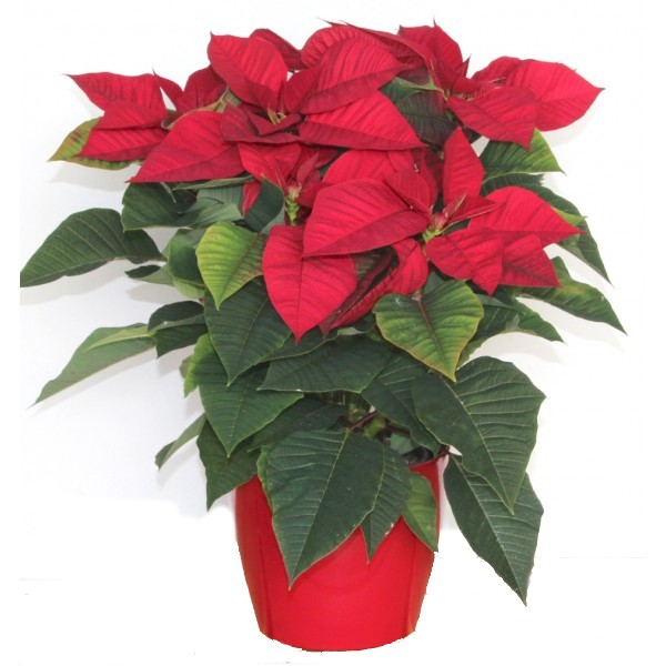 Nous proposons 3 tailles de poinsettia plus grandes que la taille traditionnelle, de couleur rouge traditionnelle, une plante haute, large et touffue. Plus la plante est haute, plus elle est large. Ce poinsettia est la plante rouge classique de Noël, mais de taille grande à immense, pour décorer de grands espaces. Plante d'intérieur au feuillage vert et rouge, elle a besoin d'un arrosage modéré (2 fois par semaine), de ne jamais mouiller les feuilles et d'un environnement humide. du chauffage.