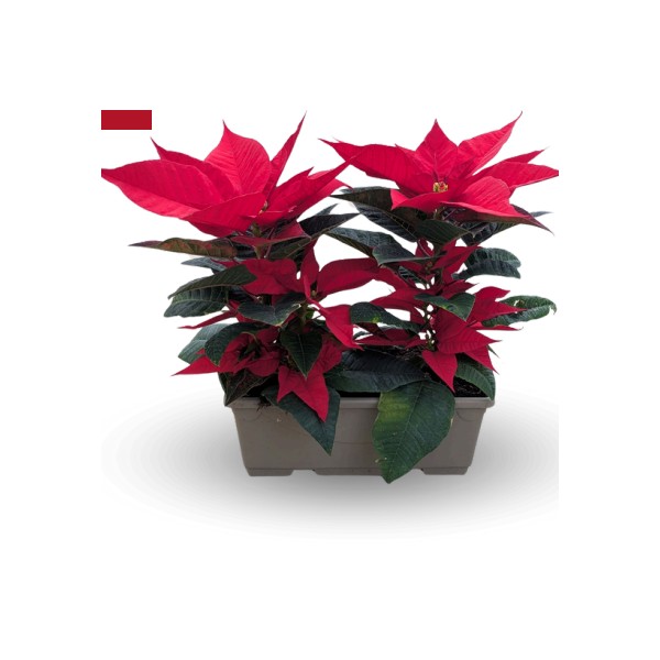 Poinsettia 'princettia' blanc très ramifié, dans un grand pot. Un poinsettia plus large et plus touffu.