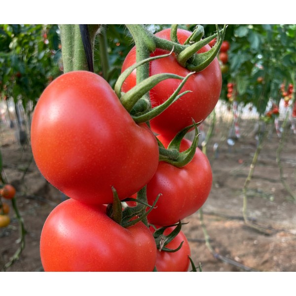 Variété de tomate de taille indéterminée de type ramifié avec une extraordinaire uniformité tant dans la formation du bouquet que dans la disposition et la taille des fruits. Il se distingue également par ses excellents résultats en hiver, où il offre une très bonne production. Le fruit a une forme arrondie, légèrement aplatie et une couleur rouge spectaculaire. Il intègre une triple résistance au TSWV, TYLCV et ToBRFV.