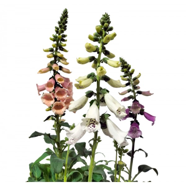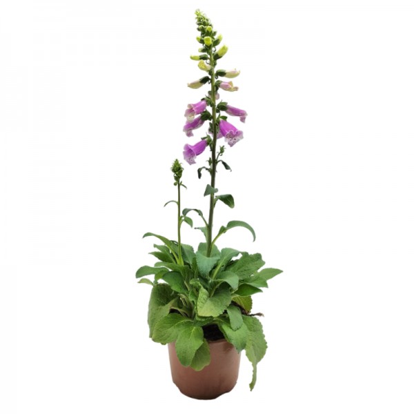 Digitalis purpurea é uma planta caducifólia de verão que resiste e adora o calor, que é quando abre as suas grandes folhas e nos dá a espetacular floração de longos caules envoltos em sinos. Disponível em cores diferentes. Resiste bem ao sol e à sombra, ideal para um jardim de baixa manutenção. Tolera bem a seca. Com o frio do inverno, a parte aérea desaparece, mas renasce na primavera.