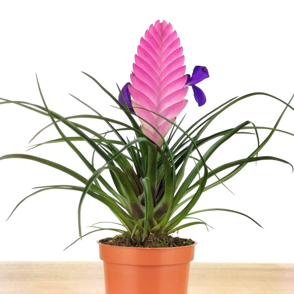 Tillandsia cyanea é uma planta da família das bromélias, que pode ser cultivada como cravo aéreo ou como planta em vaso. Neste caso apresentamos a tillandsia cyanea como uma planta enraizada com uma flor rosa espetacular. Requer poucos cuidados, um espaço sombreado, ou sol sombreado, e irrigação escassa, pois é sensível ao excesso de água e a irrigação por aspersão é suficiente para isso.