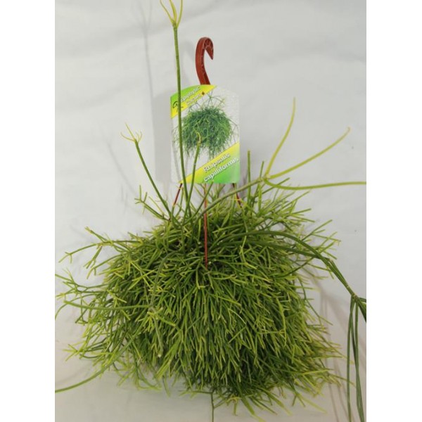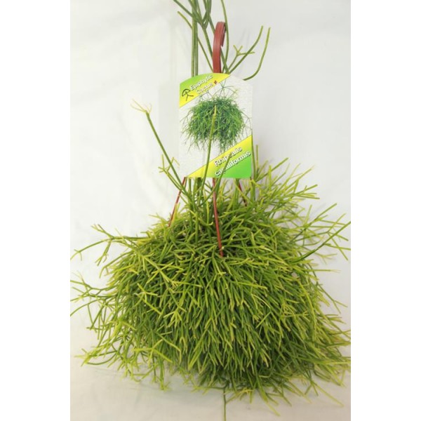 Cria arbustos grossos com suas folhas cilíndricas e verdes claras, que podem cair até 50 cm. Uma poda de vez em quando aumenta seu crescimento. Rega baixa, precisa de um espaço de sombra bem iluminado, como todos os rhipsalis.