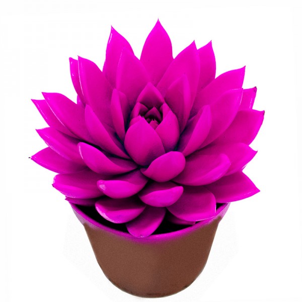 Planta suculenta ou suculenta nativa do continente americano, é uma echeveria com folhas grossas e tenras, com as pontas pintadas de rosa com tinta especial para plantas que permite fotossíntese perfeita.