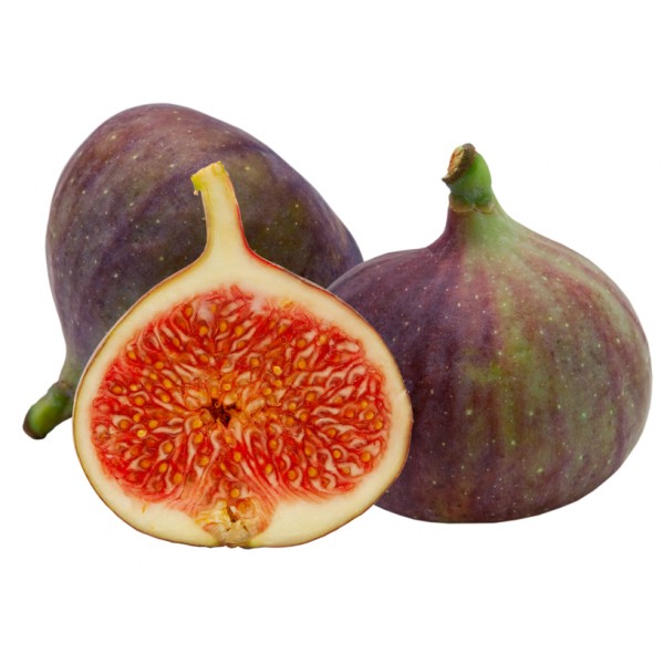Frutos (figos) de forma abundante e de tamanho médio, com casca roxa e polpa vermelha e amorosa, de sabor muito doce, um dos mais apreciados entre os figos.